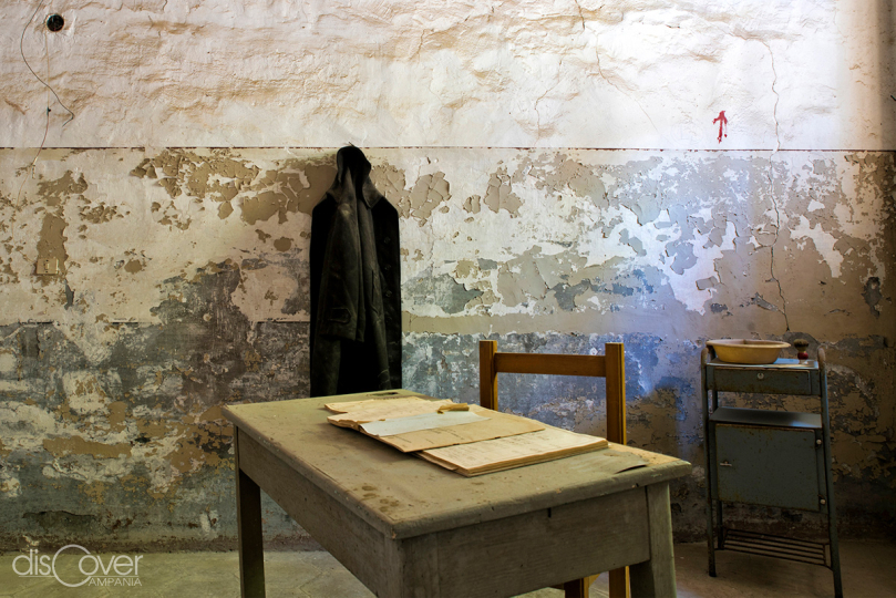 Il complesso monumentale, stravolto dal lungo uso come prigione, ha mantenuto intatta, fortissima quell’impronta, che ha quasi cancellato ogni traccia del preesistente, a parte la facciata, in stile rinascimentale con caratteristiche rifiniture di piperno, come i soffitti dipinti delle grandi sale, suddivise per accogliervi le celle dei detenuti. La caserma delle guardie è un ampliamento ottocentesco come altri ambienti del carcere più muovo. C’era un edificio di celle singole, che i carcerati avevano dipinto ciascuna di colore diverso, e un edificio di celle collettive, qualcuna con quaranta ospiti addirittura e poi la medicheria, la casa del direttore. E i locali della teleria, dove si tessevano le stoffe di canapa e si confezionavano capi di biancheria, la falegnameria e la legatoria. Tutte create dai Gesuiti per redimere i carcerati. Mentre la Spianata, con i suoi circa due ettari di terreno, era utilizzata per coltivazioni e allevamenti, con la vendita settimanale dei prodotti in un mercato allestito nel carcere. La maggior parte dei locali inseriti nelle visite guidate sembrano ancora essere stati appena lasciati dai detenuti, con le loro divise, scarpe, oggetti di uso quotidiano. L’ultima stanza offre una installazione di Alfredo Pirri, intitolata 7.0, perché inaugurata la mattina alle sette, giacchè l’opera è stata concepita per intercettare il primo raggio di sole del nuovo giorno.